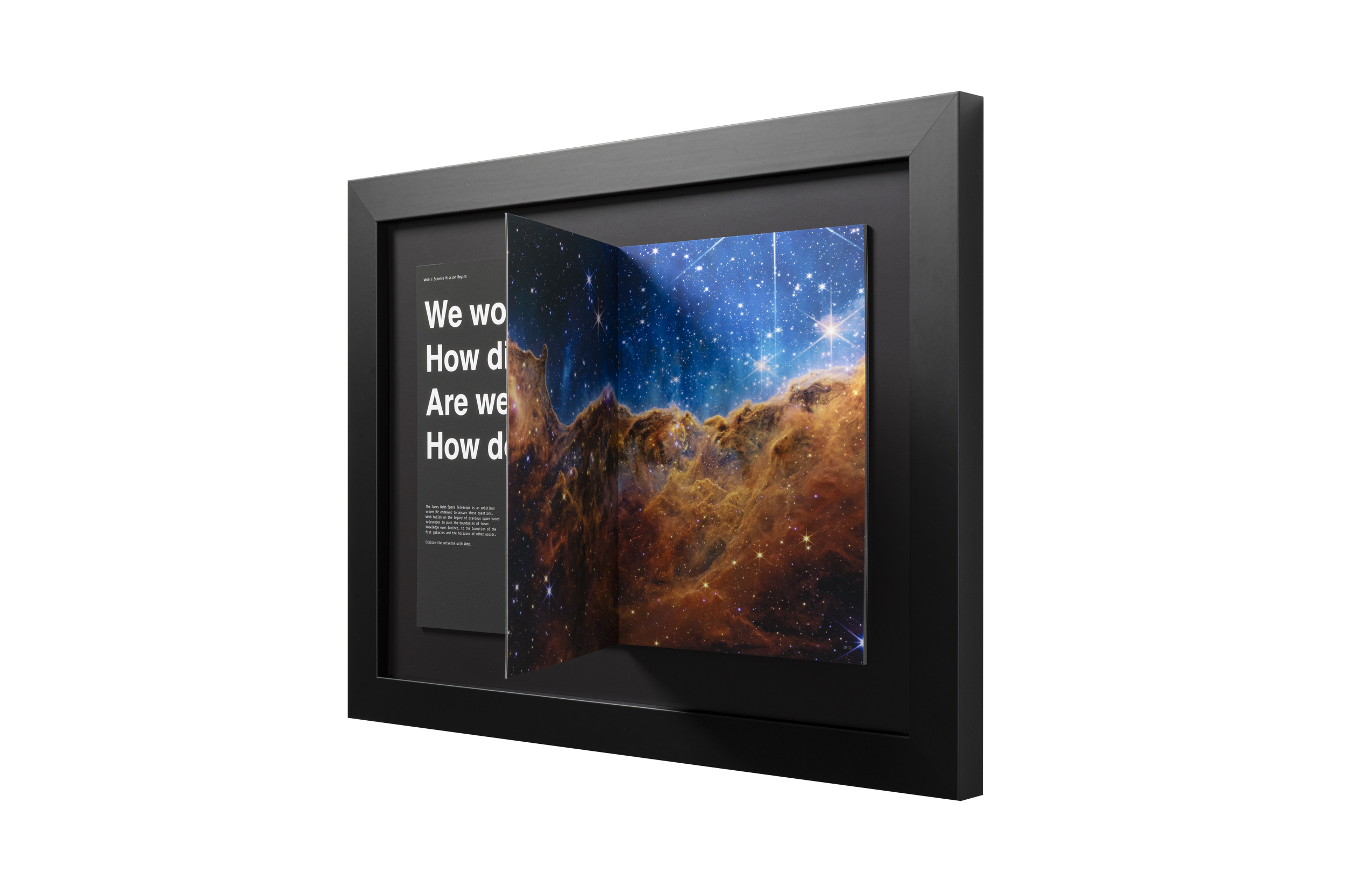 Framebook is a 45x30 cm book housed in a 61x46 cm frame.